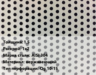 Лист перфорированный 1.5 1х2 Марка: AISI 304 нержавеющий Qg 10-15