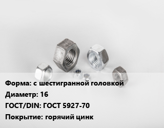 Гайка с шестигранной головкой D=16 ГОСТ 5927-70 горячий цинк