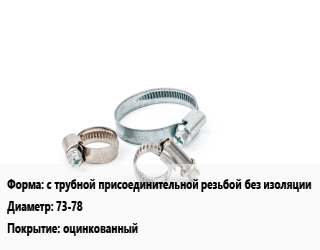 Хомут с трубной присоединительной резьбой без изоляции D=73-78 оцинкованный, шт цена от 14.39 ₽ / шт, где купить, условия доставки в Сургуте и Тюменской области