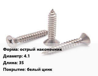 Саморез острый наконечник D=4.1 L=35 белый цинк