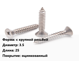 Саморез с крупной резьбой D=3.5 L=25 оцинкованный