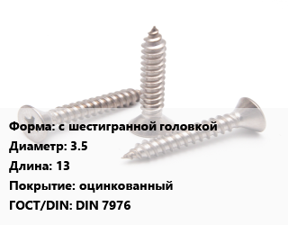 Саморез с шестигранной головкой D=3.5 L=13 оцинкованный ГОСТ: DIN 7976