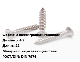 Саморез с шестигранной головкой D=4.2 L=22 нержавеющая сталь ГОСТ: DIN 7976