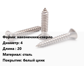 Саморез наконечник-сверло D=4 L=20 сталь белый цинк, упаковка 17000 шт цена от 2 813 ₽ / кг, где купить, условия доставки в Сургуте и Тюменской области