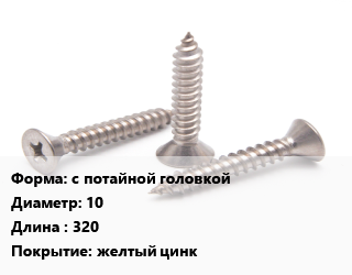 Саморез с потайной головкой D=10 L=320 желтый цинк, шт цена от 217.2 ₽ / кг, где купить, условия доставки в Сургуте и Тюменской области