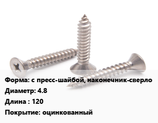 Саморез с пресс-шайбой, наконечник-сверло D=4.8 L=120 оцинкованный