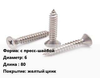 Саморез с пресс-шайбой D=6 L=80 желтый цинк, упаковка 1300 шт цена от 1 542 ₽ / кг, где купить, условия доставки в Сургуте и Тюменской области