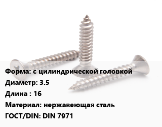 Саморез с цилиндрической головкой D=3.5 L=16 нержавеющая сталь ГОСТ: DIN 7971