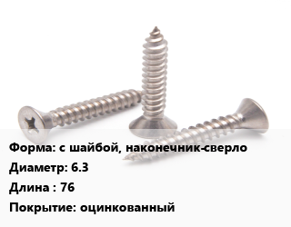 Саморез с шайбой, наконечник-сверло D=6.3 L=76 оцинкованный