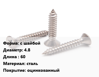 Саморез с шайбой D=4.8 L=60 сталь оцинкованный