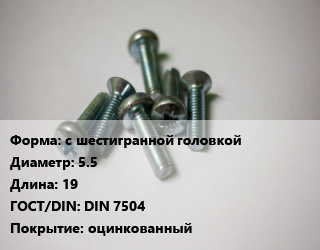 Винт с шестигранной головкой 5.5х19 DIN 7504 оцинкованный
