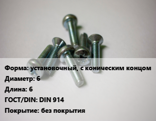 Винт установочный, с коническим концом 6х6 DIN 914 без покрытия