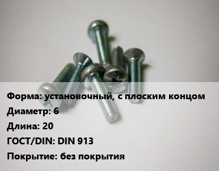 Винт установочный, с плоским концом 6х20 DIN 913 без покрытия