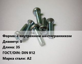 Винт с внутренним шестигранником 5х35 DIN 912 Сталь: A2, цена за шт, кг цена от 18.9 ₽ / кг, где купить, условия доставки в Сургуте и Тюменской области