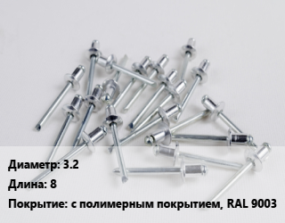 Заклепка 3.2х8 с полимерным покрытием, RAL 9003, упаковка 1000 шт цена от 411.65 ₽ / шт, где купить, условия доставки в Сургуте и Тюменской области