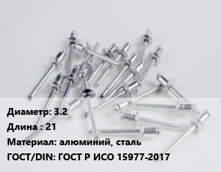 Заклепка 3.2х21 алюминий, сталь ГОСТ: ГОСТ Р ИСО 15977-2017