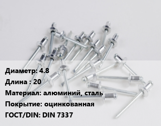Заклепка 4.8х20 алюминий, сталь оцинкованная ГОСТ: DIN 7337