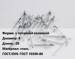 Заклепка с потайной головкой 4х20 сталь ГОСТ: ГОСТ 10300-80, кг цена от 243.67 ₽ / шт, где купить, условия доставки в Сургуте и Тюменской области