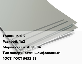Лист нержавеющий 0.5 1х2 Сталь: AISI 304 Тип:шлифованный ГОСТ 5632-83, шт, х/к цена от 3 166 ₽ / т, где купить, условия доставки в Сургуте и Тюменской области