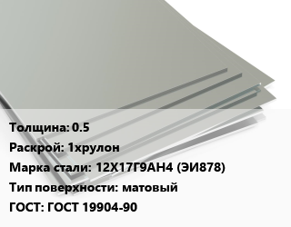 Лист нержавеющий 0.5 1хрулон Сталь: 12Х17Г9АН4 (ЭИ878) Тип:матовый ГОСТ 19904-90, х/к, по запросу цена от 177 953 ₽ / т, где купить, условия доставки в Сургуте и Тюменской области