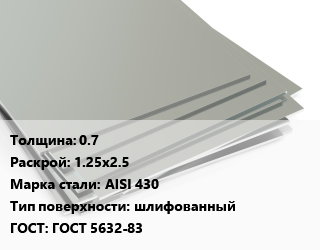 Лист нержавеющий 0.7 1.25х2.5 Сталь: AISI 430 Тип:шлифованный ГОСТ 5632-83, шт, х/к цена от 3 654 ₽ / т, где купить, условия доставки в Сургуте и Тюменской области