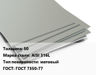 Лист нержавеющий 50 Сталь: AISI 316L Тип:матовый ГОСТ 7350-77, г/к, по запросу цена от 1 401 880 ₽ / т, где купить, условия доставки в Сургуте и Тюменской области