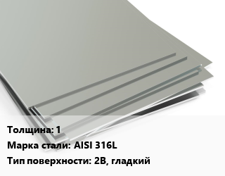 Лист нержавеющий 1 1хL Сталь: AISI 316L Тип:2B, гладкий